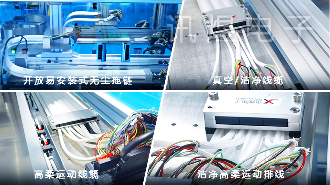 訊煜電子在線束、運動線纜行業(yè)已經(jīng)沉淀20多年,目前擁有無塵拖鏈、線纜、線束三大事業(yè)部,廠區(qū)面積達7000多平米。公司專注于無塵拖鏈、潔凈高柔運動排線、真空線纜、潔凈運動線纜、高柔運動線纜、中高端線束的研發(fā)和生產(chǎn),并提供以上所有系列產(chǎn)品全集成一站式服務。 運動線纜是訊煜電子主打產(chǎn)品之一,運動線纜又叫拖鏈線纜,是無塵拖鏈以及各類拖鏈中使用的柔性線纜,在智能制造運動控制領(lǐng)域發(fā)揮著重要的作用。區(qū)別于工業(yè)靜態(tài)線纜,運動線纜不僅要具備靜態(tài)線纜的所有功能,還需要在運動場景下穩(wěn)定、可靠地運行,因此運動線纜在材料、加工工藝、電氣性能及運動性能等方面,都比工業(yè)靜態(tài)線纜的要求高很多。